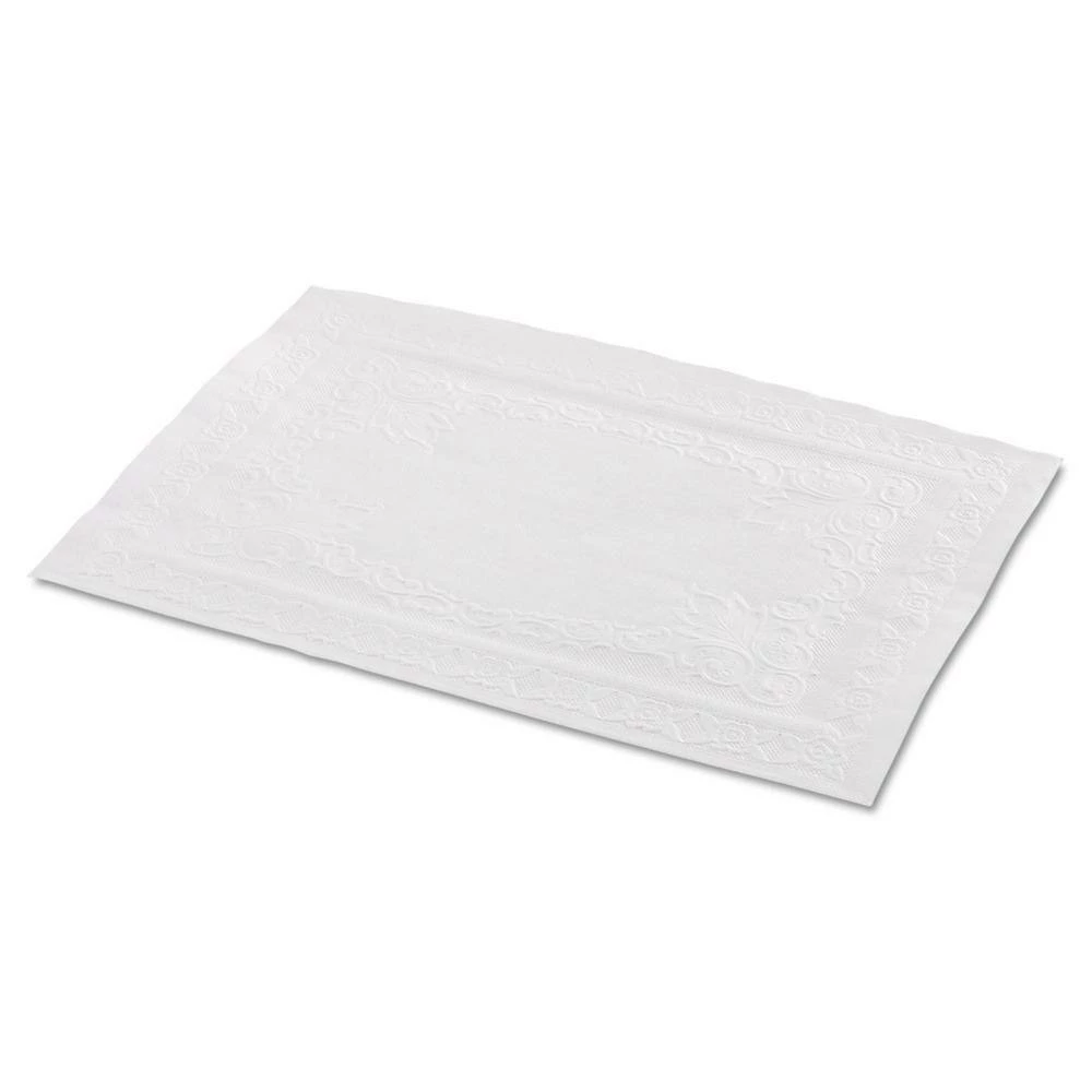 Elegant placemat adds a touch of class to your table. Provides a stylish, clean look in addition to protecting the surface from stains, marks or scratches. Reduces exposure to surface germs. Classic Embossed Straight Edge. Mat Type: Placemat; Application: Tabletops; Width: 10″; Length: 14″.