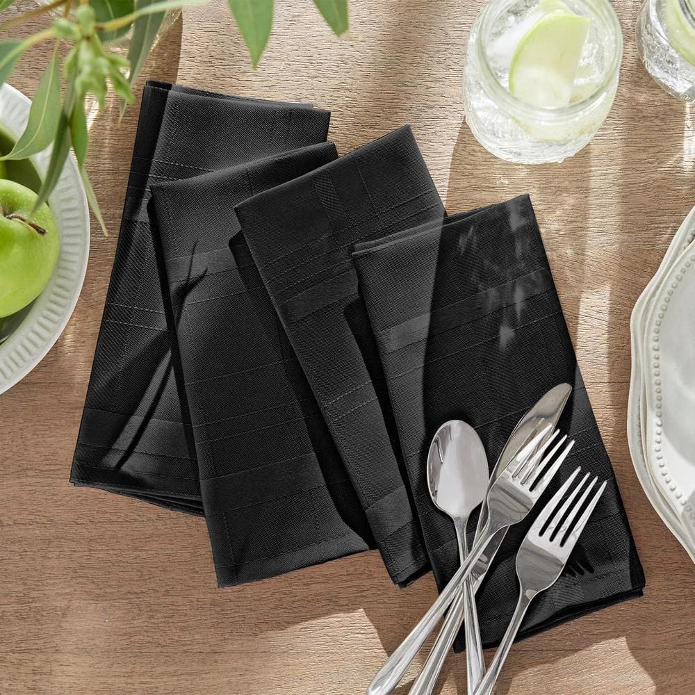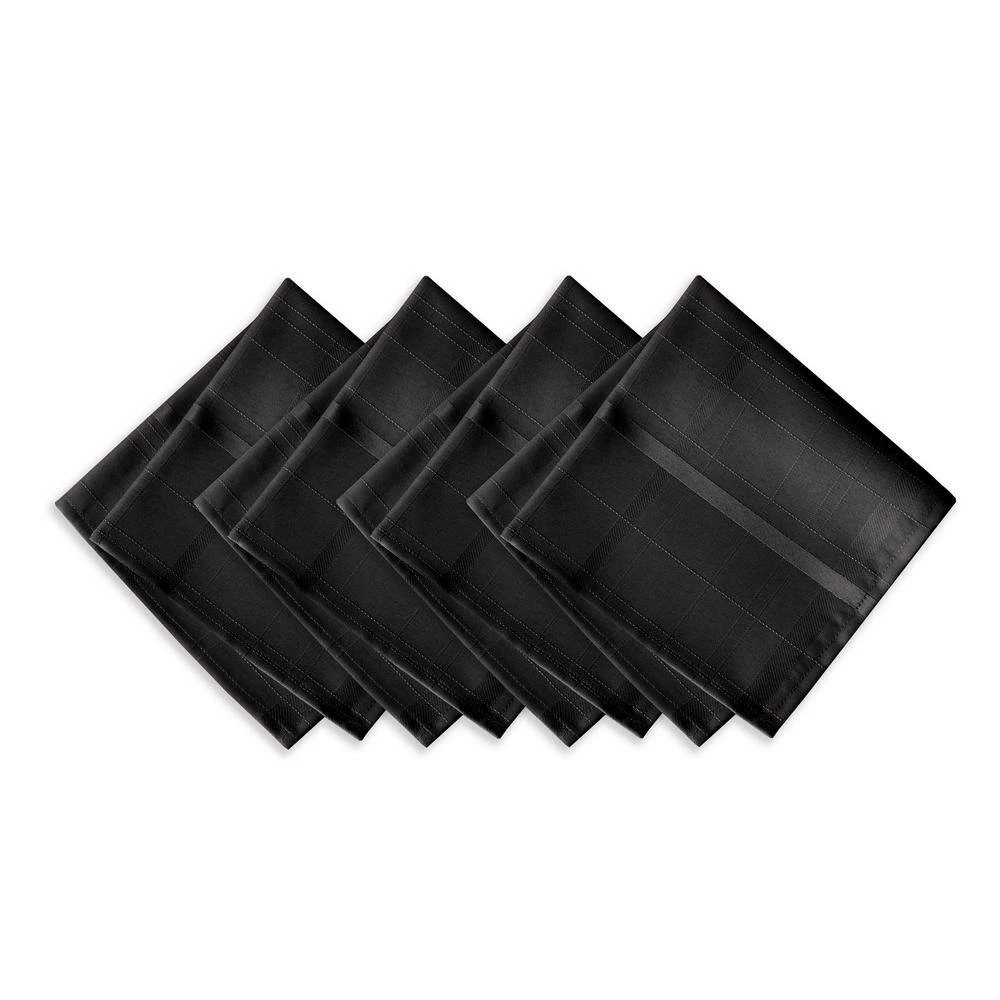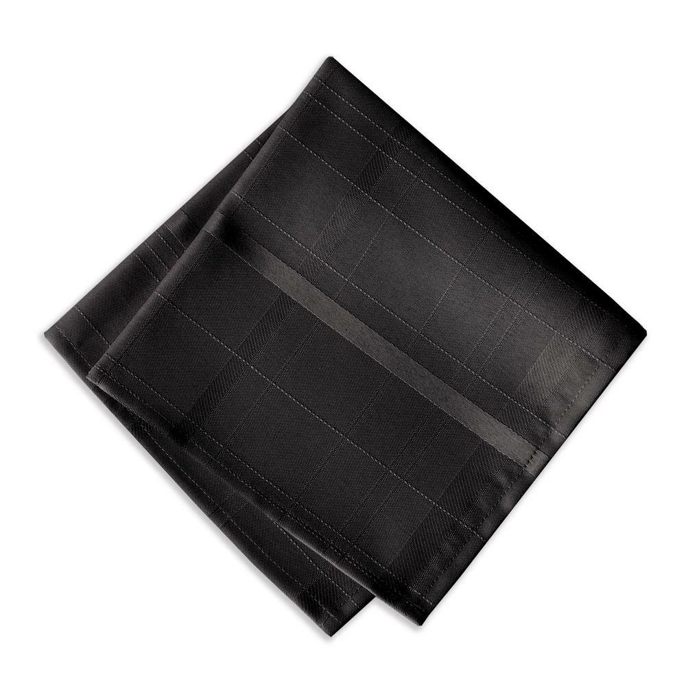 The Elegance Plaid table linens collection features a solid plaid pattern and is available in seven colors: Beige, Black, Blue Shadow, Holly Green, Poinsettia Red, Ribbon Gold and White. 100% Polyester. This fine damask table linen is also stain resistant and water repellant. Machine wash and dry. Made in China.