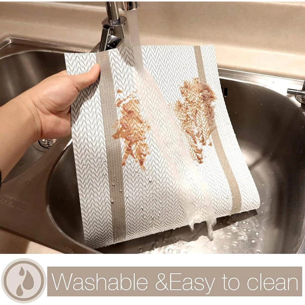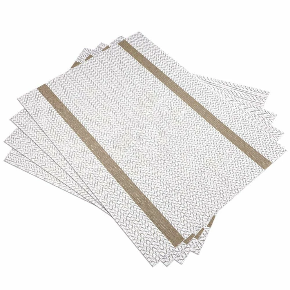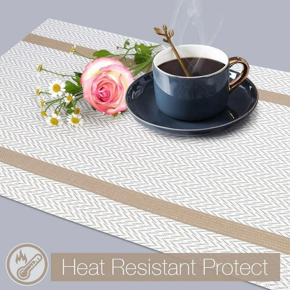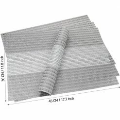 Add a touch of elegance to your table setting with our vinyl placemats. These luxury placemats are made of high-quality PVC material and could withstand high temperatures up to 176°F (80°C), which is durable to protect your table from scratches and stains. With a beige PVC weave design, whether you’re preparing for a special occasion or just setting the table for a relaxing dinner at home, these placemats are a good choice to add warmth, texture, and comfort to your dining space. Also, just with a damp cloth, you could easily clean any liquids or oil leaking onto your table. The proper size (18 in. x 12 in.) placemats turn your room into a comfortable nest with a new dining set.