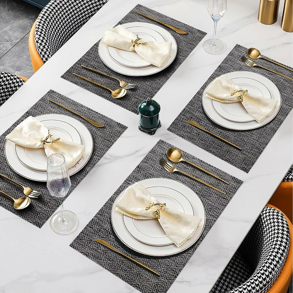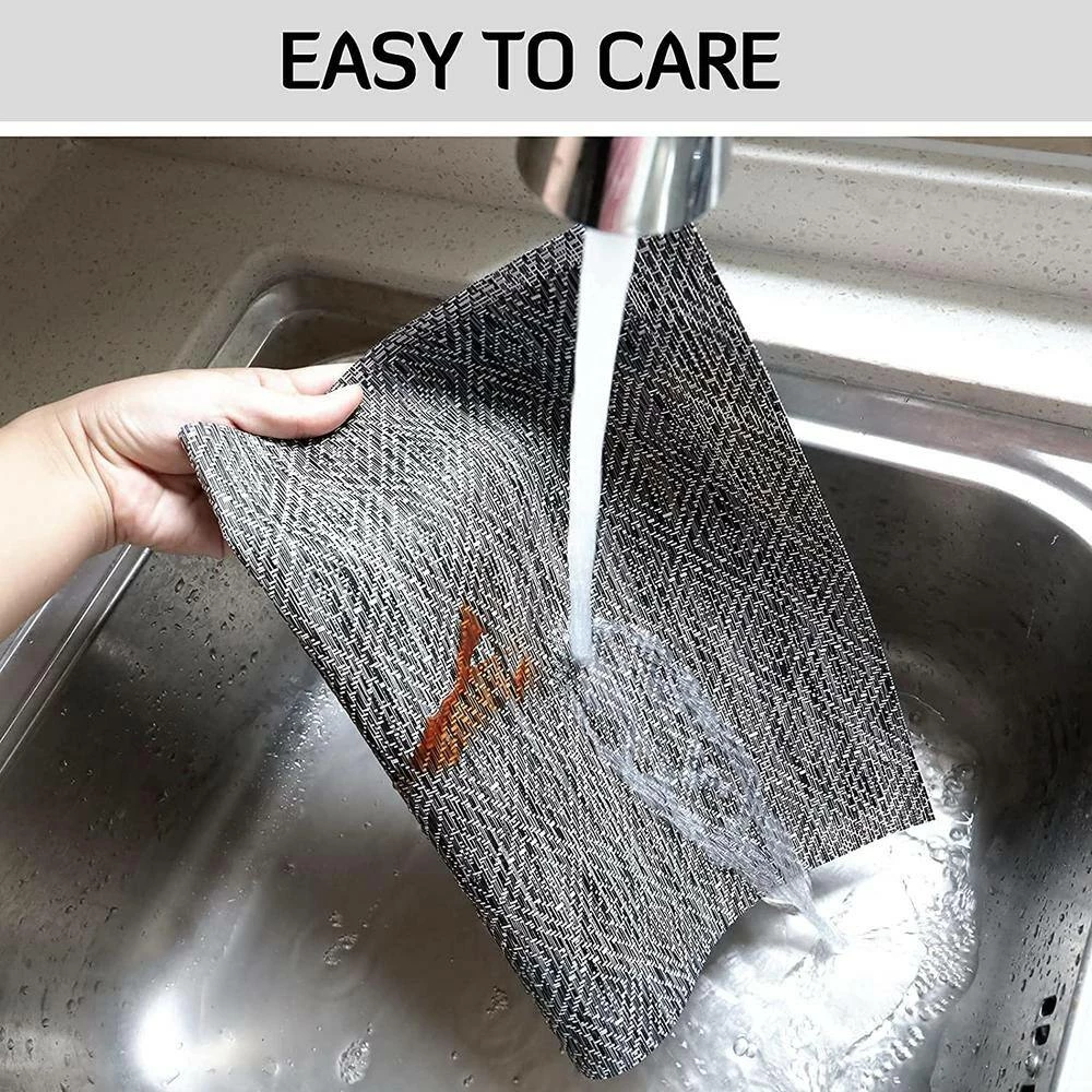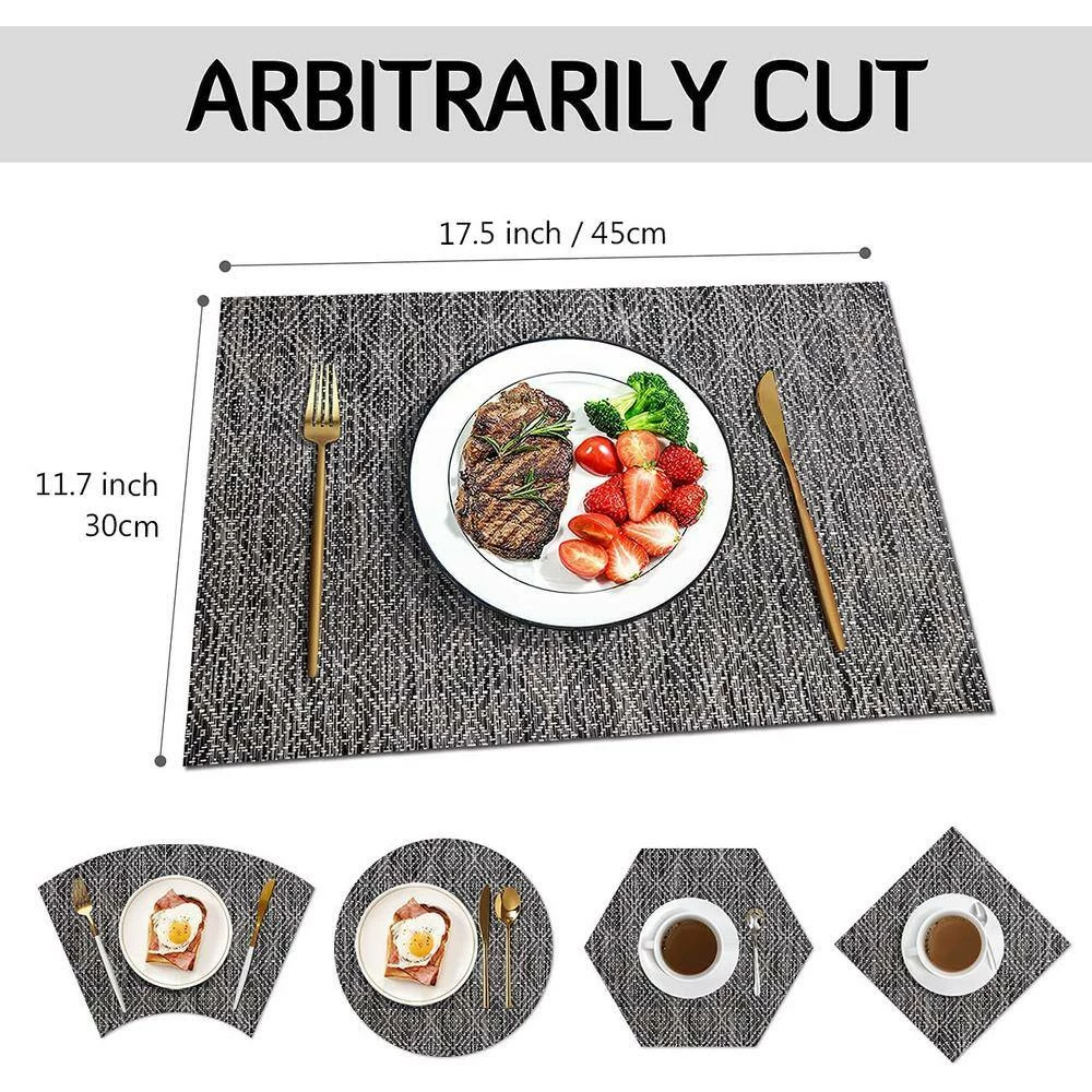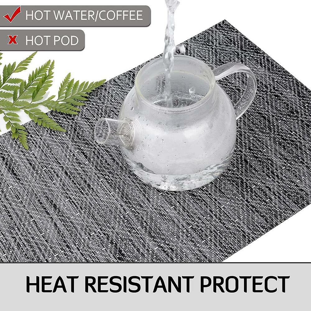 This placemat is crafted with environmental PVC materials and stylish weave design, which adds a wild touch of vibrancy to your table. Our Placemats have a precise cutting with no rough edges, and suitable thickness. The effective heat resistance can amount to 176 °F that is 80 ℃, which is good for protecting your table from scratches. The woven texture makes it have good slip resistance. The PVC place mat is washable, non-fading and stain resistant. Hand wash with a sponge or damp, or just rinse it with water to clean it. No machine wash. It will always feel and look like new! It can be rolled for storage when not to use. Perfect for kinds of tabletop whatever inside or outside. BBQ, cafe, patio, outside parties, hotel, office and causal kitchen dining decor. It’s also ideal for a gift on Thanksgiving, Christmas, wedding and other different occasion.