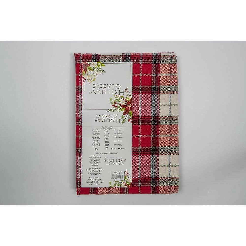 Comfy Holiday Classic table cloths are made of 95% polyester 5% Lurex. The red and black plaid with a touch of silver shine sets a picturesque table. You will dine in style. These table cloths are a great choice for holiday dinners with family and friends, entertaining, or anytime at all. Easy to care for and Machine washable. Available in a wide array of sizes to fit any table. Made in India.