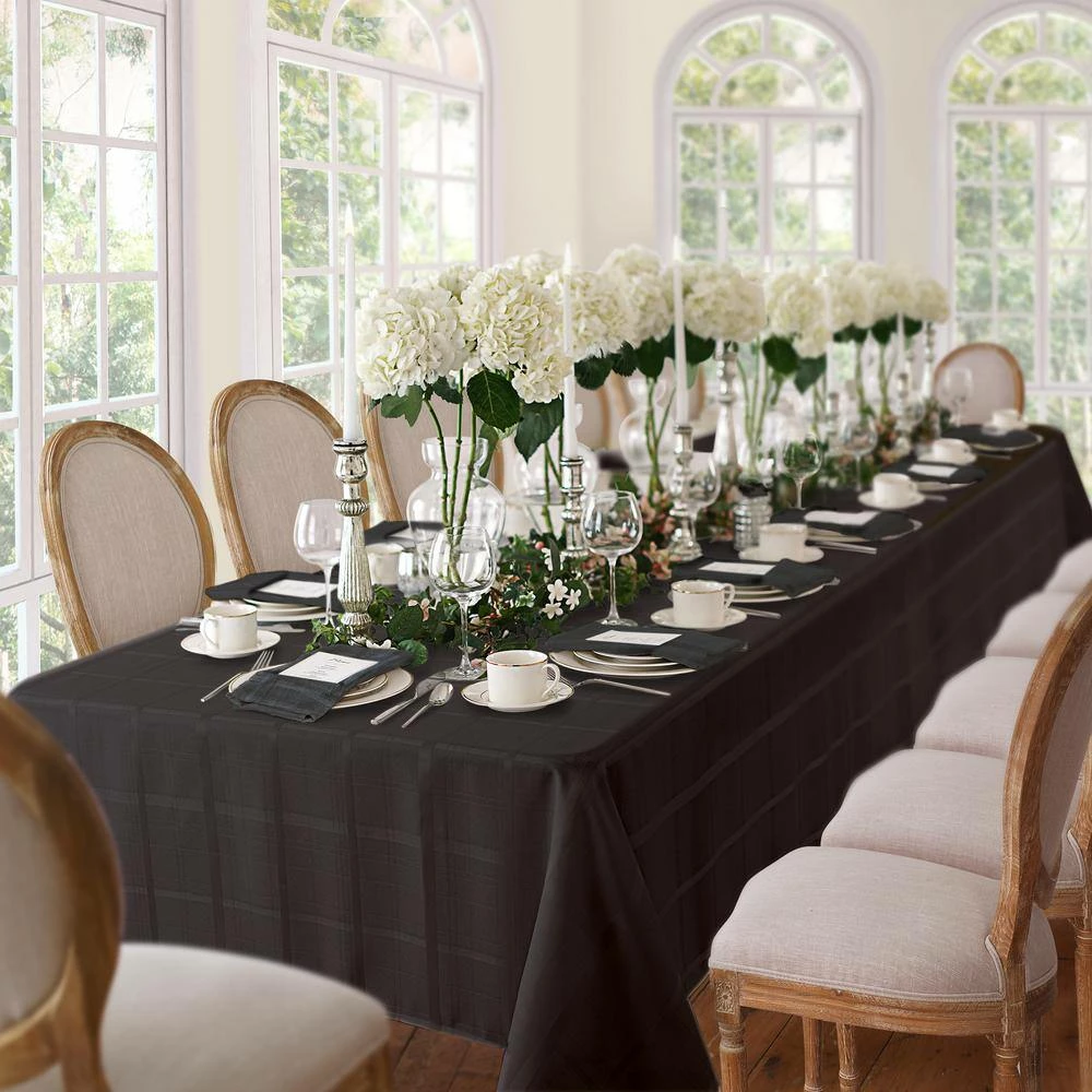 The Elegance Plaid Jacquard tablecloth is the perfect solution to your decorating and table linen needs. Delicately woven jacquard plaid design gives it the versatility of a solid, with a touch of fashion. Excellent for special occasions, events, parties, family gatherings and everyday use this table cloth has the soft hand of an ordinary tablecloth, with the added function you need. Fabric features water and stain repellant finish. Silky fabric can be ironed to release stubborn creases and make your tablecloth wrinkle free. Hemmed edge adds a finished look and prevents wear and tear. Available in a large selection of table shapes and sizes to fit all your entertaining needs. 100% Polyester. Easy care, machine washable.