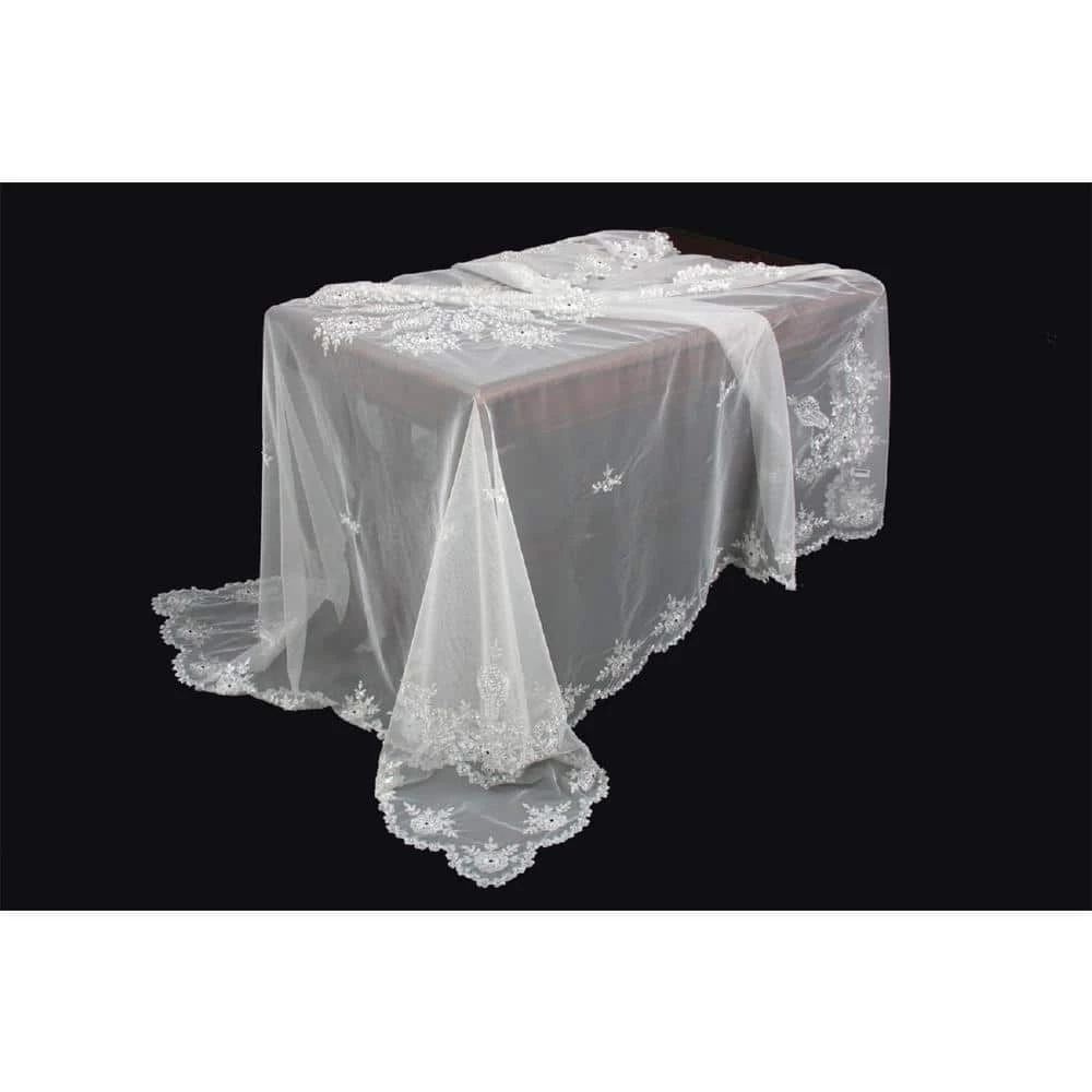 - Gorgeous lace table cloth floral designs and beaded accents