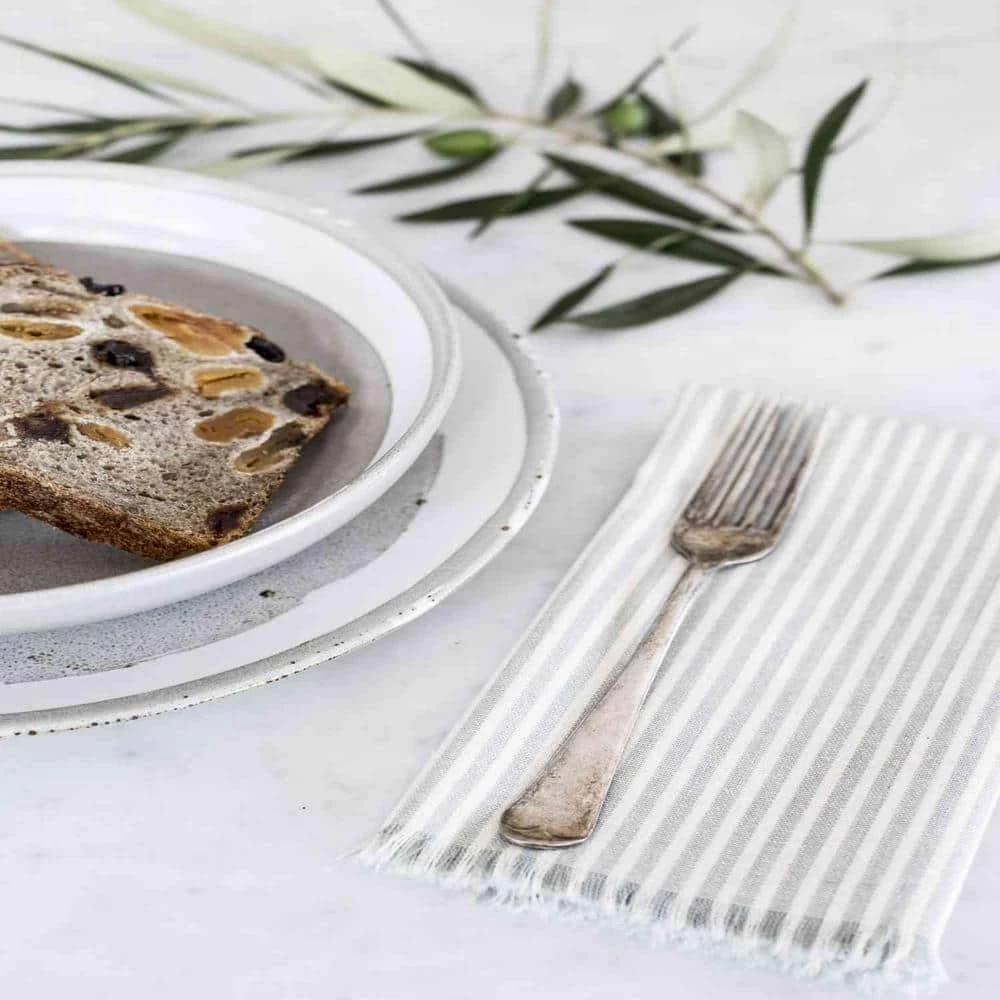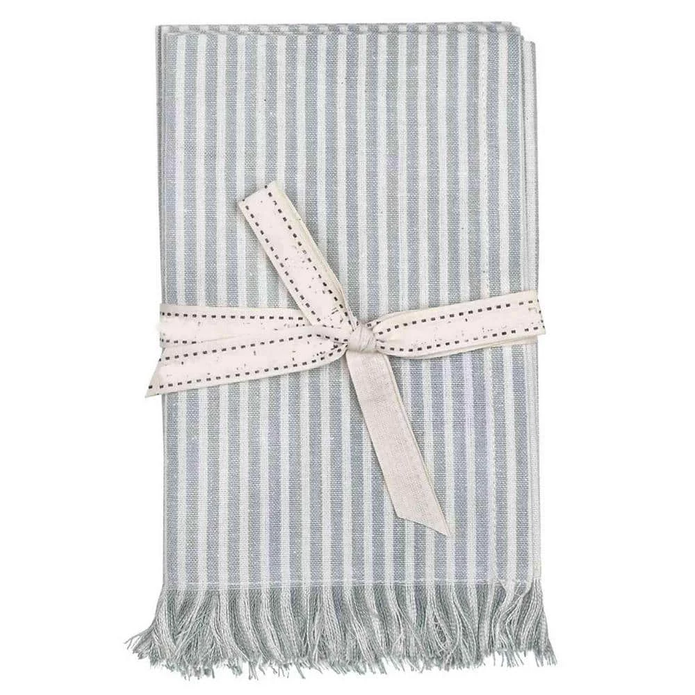 This (set of 8) navy blue stripe napkins are great for adding a touch of rustic elegance to your dining table. Our napkins are dyed in a subtle navy blue colour with thin stripes making them perfect for your next dinner party. The neutral colorway makes them seamlessly fit into any decor style you have in your home. Our napkins are made with recycled cotton and are soft and very easy to clean. They not only make a great accent for you dining table but also make a great gift for your loved ones. 16 in. H x 16 in. W x 1 in. D.