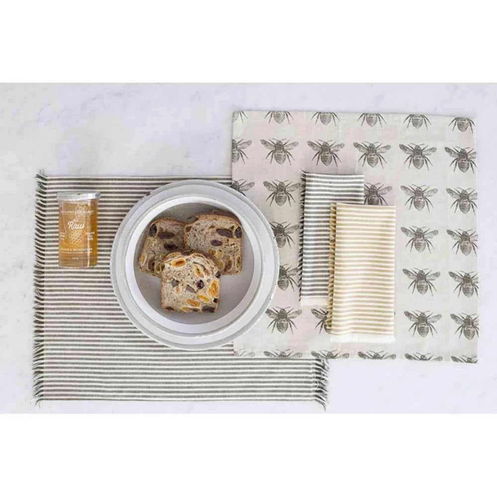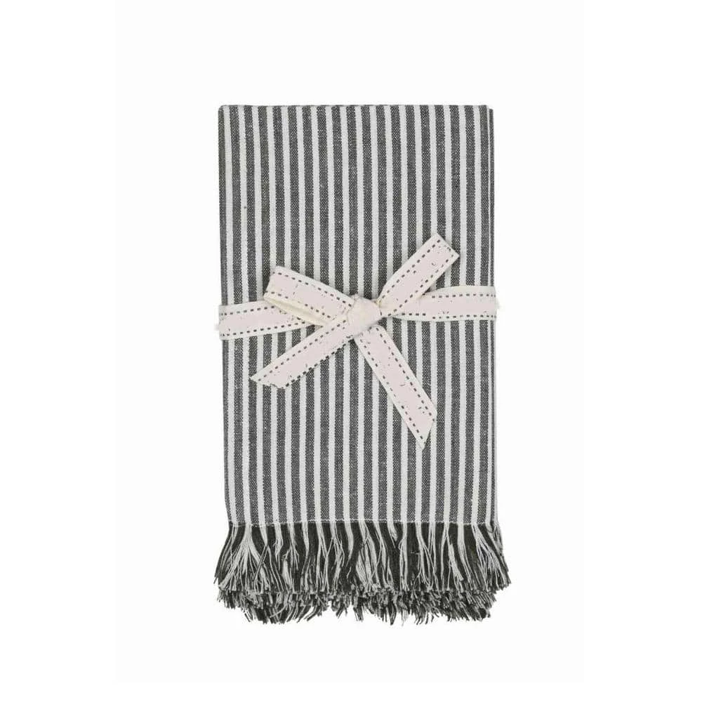 This set of 8-leaf green stripe napkins are great for adding a touch of rustic elegance to your dining table. Our napkins are dyed in a subtle leaf green color with thin stripes making them perfect for your next dinner party. The neutral colorway makes them seamlessly fit into any decor style you have in your home. Our napkins are made with recycled cotton and are soft and very easy to clean. They not only make a great accent for you dining table but also make a great gift for your loved ones. 16 in. H x 16 in. W x 1 in. D.