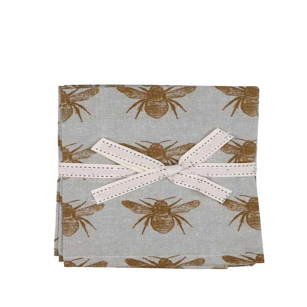 This (set of 8) Pale Yellow bumble bee napkins are perfect to add a fun finishing touch to your fining set-up. These napkins are made from recycled cotton which makes them incredibly soft while also being extremely efficient at keeping away any escaped crumbs. Pale Yellow colored bumble bees sit atop a neutral off white background which makes these napkins perfect for any theme you have for your garden or dinner party. These napkins come in a (set of 8) which makes them great as gifts for your friends and loved ones. 16 in. H x 16 in. W x 1 in. D.