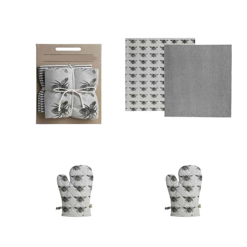 This set of 2-tea towels with dark green bumble bee oven gloves is a great one for you if you’re looking to add a touch of natural elegance to your kitchen. The soft and generously sized tea towels come in a pack of 2-and feature the fun dark green bumble bees on one and a complimentary striped pattern on the other. The oven gloves have the same dark green bumble bee design and are quilted for better heat protection. Both of these items are made recycled cotton making them very soft and durable, maintain their softness even after repeated washing. You can buy them for your own kitchen or gift it to someone to brighten up their space. 23 in. H x 20 in. W x 1 in. D.