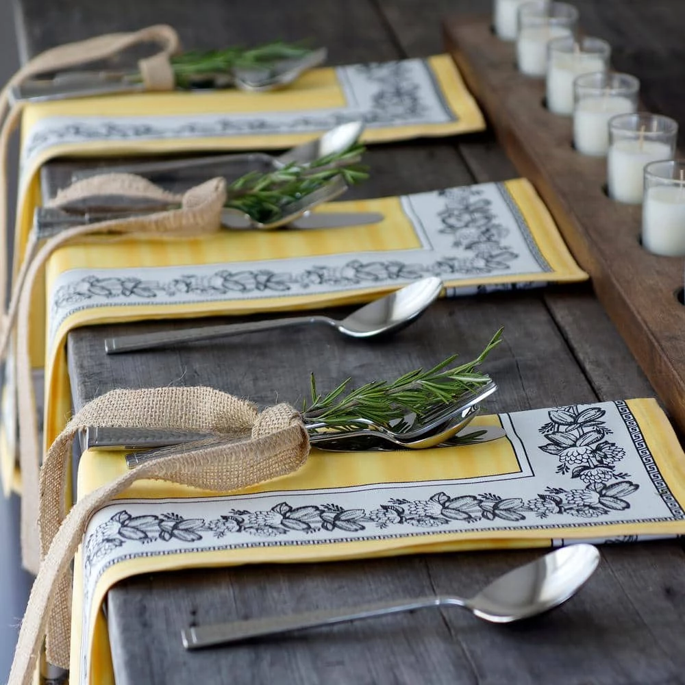 Set a sophisticated table with the Audubon pattern by Villeroy and Boch. Take a trip back in time to a quaint French countryside with our black-and-white country scenes and designs on white porcelain colored fabric. Made with fine cotton and European oversized luxury, Villeroy and Boch Audubon is sure to delight. These linens are machine washable. Iron as needed. Coordinating reversible placemats available.