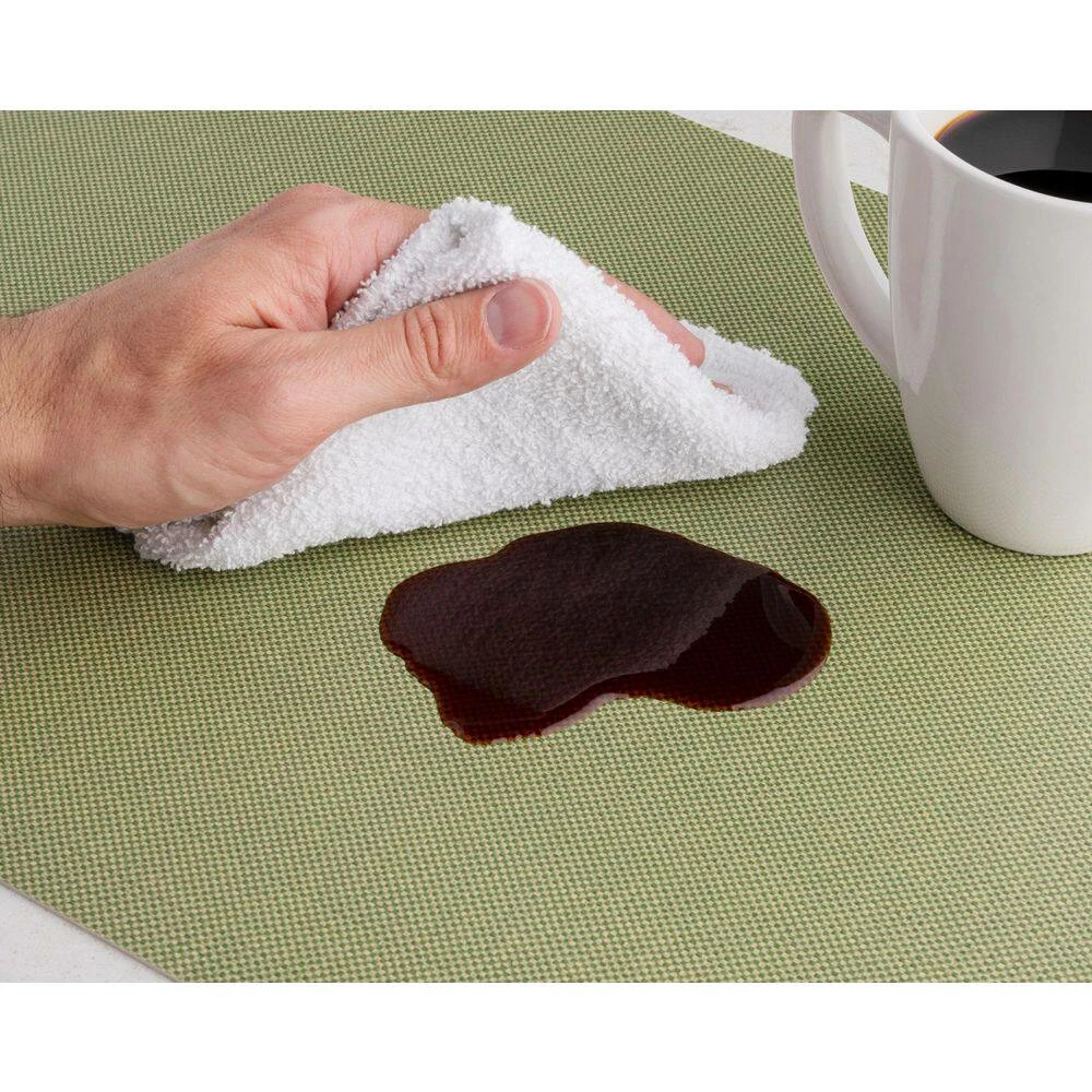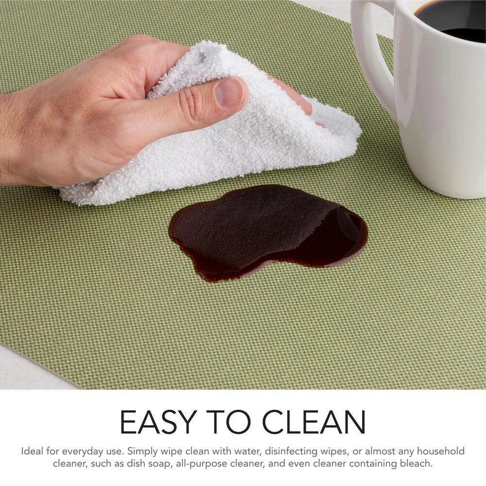 - Protect your table surface with solid spill proof 100% vinyl placemats