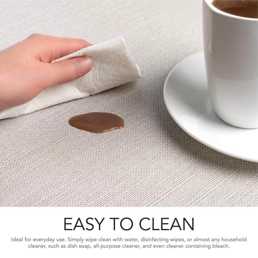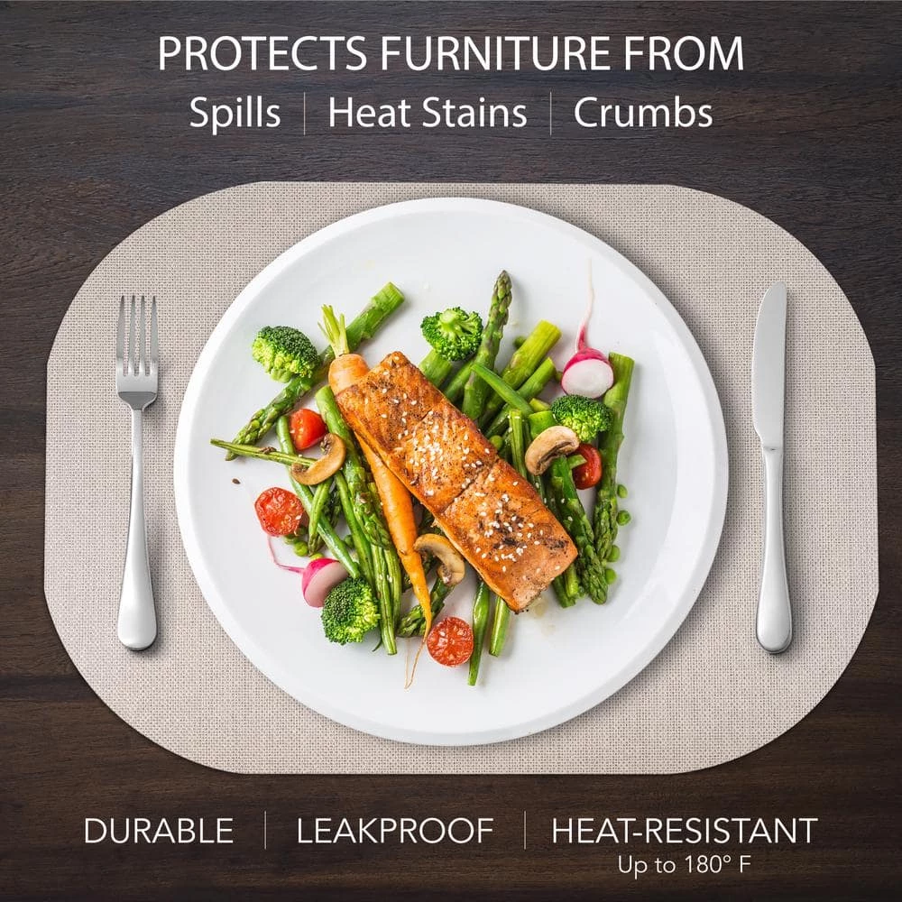 - Protect your table surface with solid spill proof 100% vinyl placemats