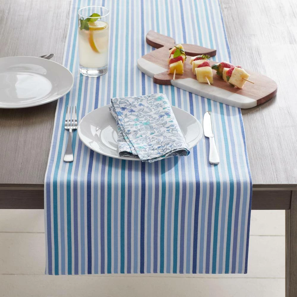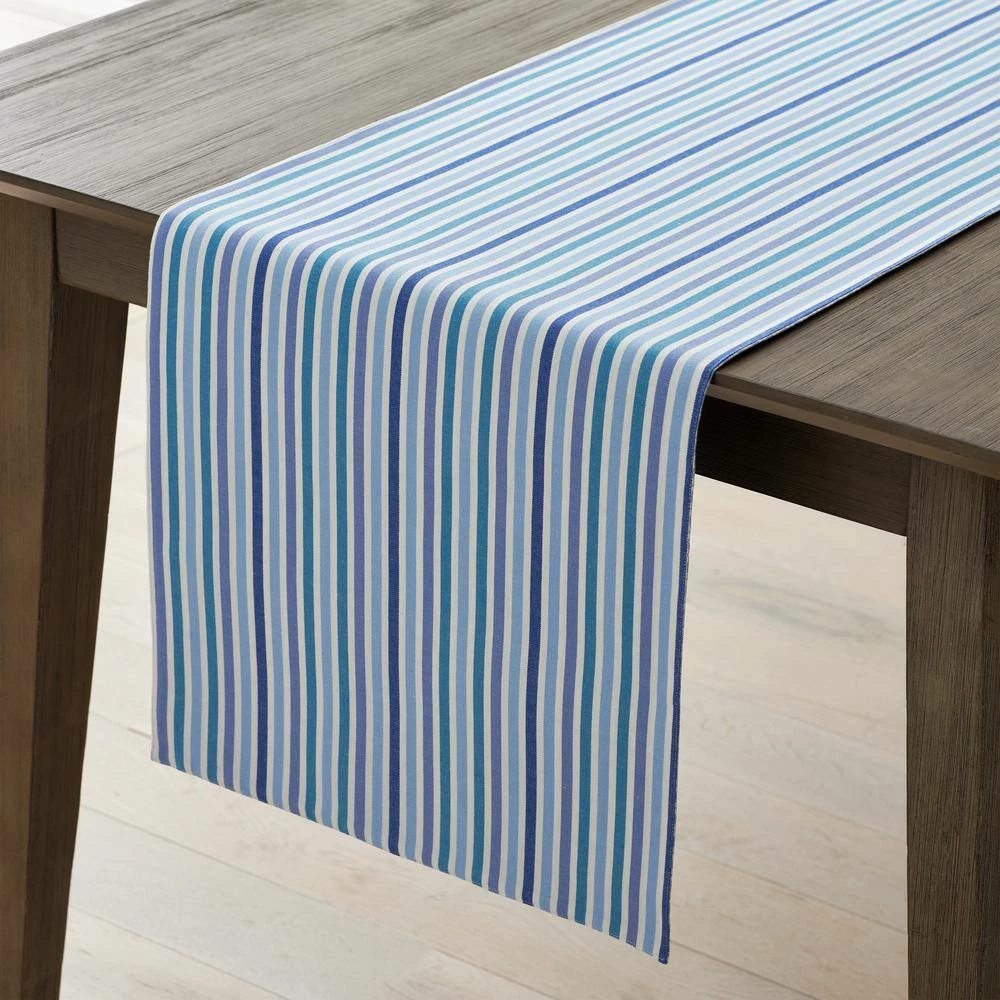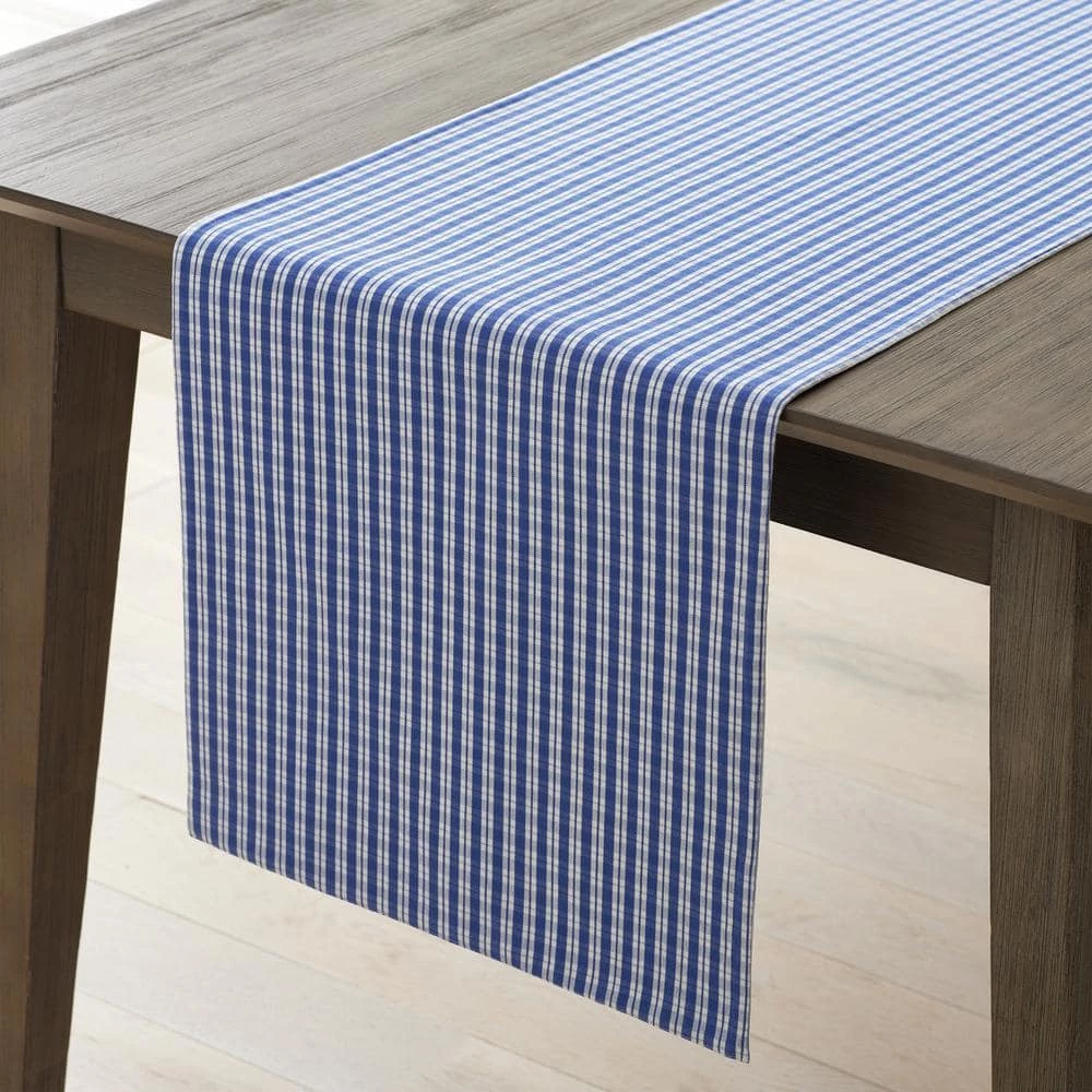 - Reversible table runner features an updated gingham on one side and vibrant stripes on the other