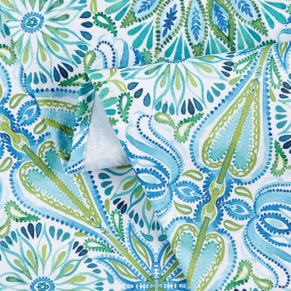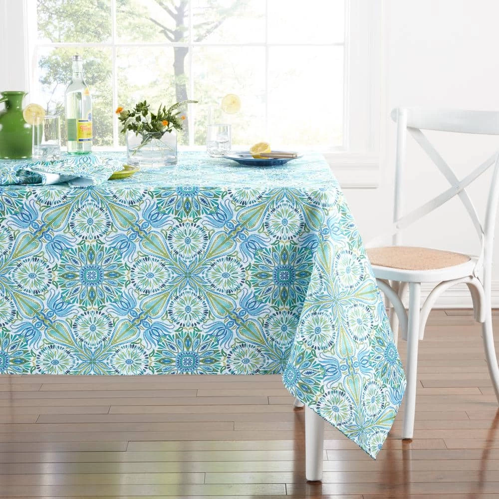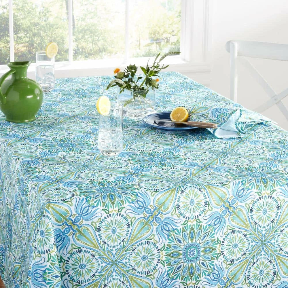 Brighten your dining table with the Fiesta Greencove Indoor/Outdoor Tablecloth. Featuring a medallion design in vibrant hues, this tablecloth brings a bright, cheerful touch to your home decor year-round. Pair it with matching table linens for a complete, coordinated look for your space.