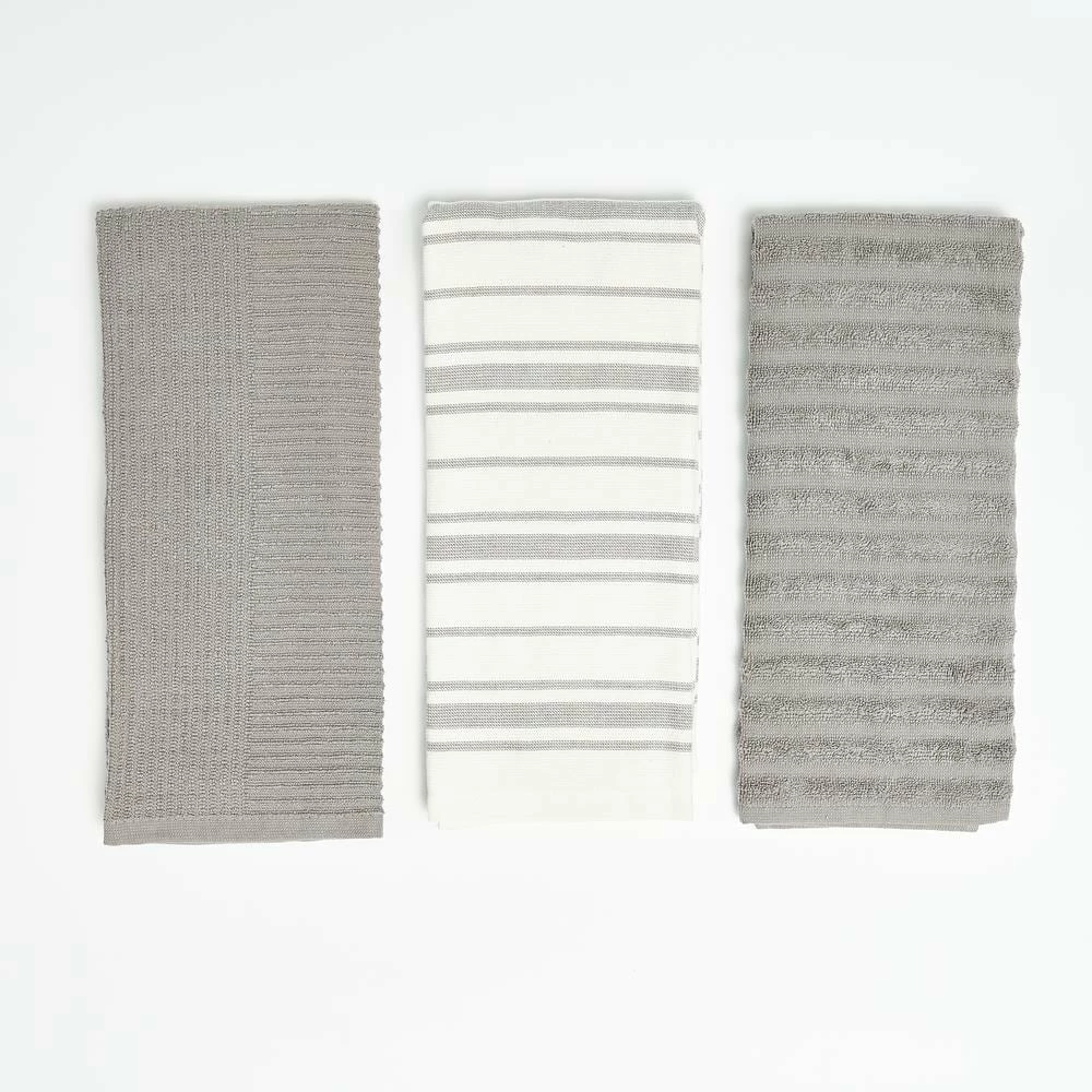 Grey Multi Stripe 100% Cotton Kitchen Towels (3 Piece Set) by NAUTICA