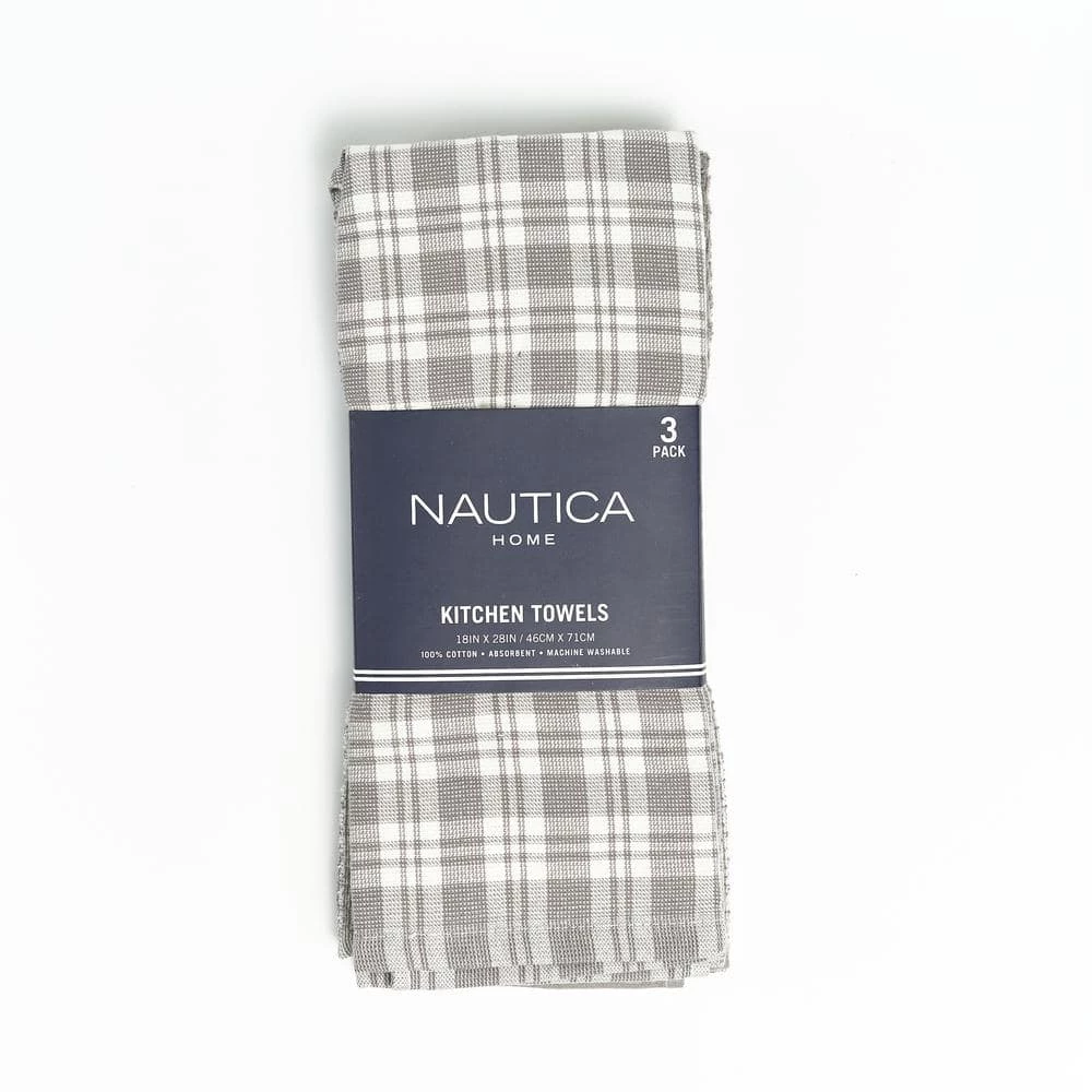 Cook, clean, bake, and show off with these Nautica 3 pack kitchen towels. Nautica’s collection of kitchen towels are a functional and beautiful addition to your home. These towels are durable and made to last, and perfect for drying and cleaning in the kitchen, dining room, or bar. Made from 100% cotton, these kitchen towels are a responsible alternative to paper towels. Machine washable. Imported. Display your kitchen towels with coordinating accessories from Nautica including additional kitchen towels, oven mitts, and mini mitts for a coordinated look.