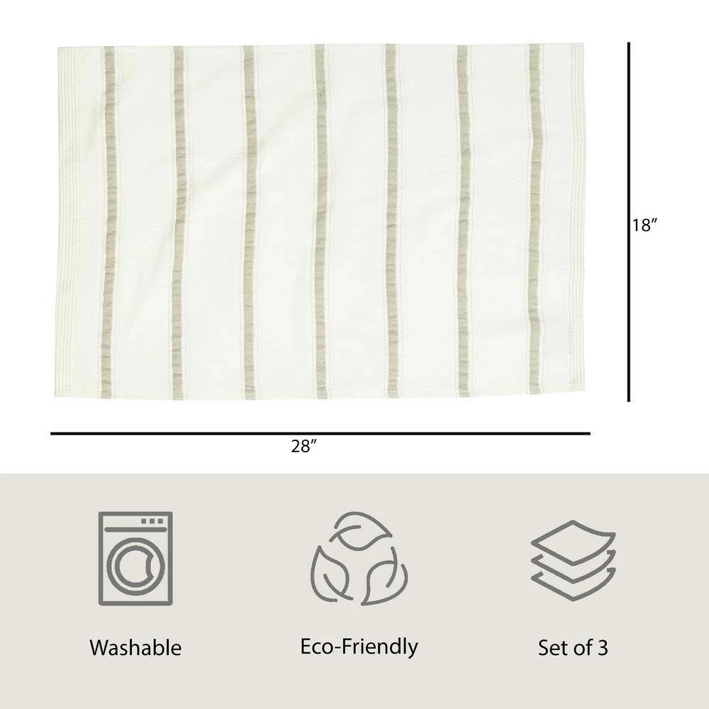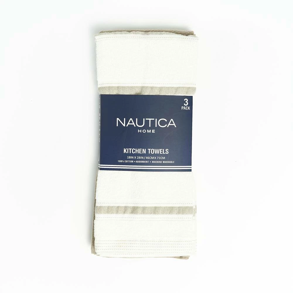 Natural Beige Solid/Stripe Combo 100% Cotton Kitchen Towels (3 Piece Set) by NAUTICA