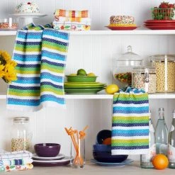 Diamonte Blue / Green / Yellow Striped Cotton Kitchen Towel (Set of 2) by Fiesta