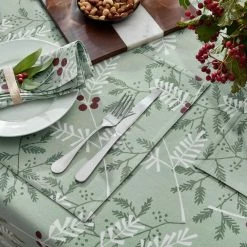 Holiday Berry Sprig 20 in. x 20 in. Green Cotton Napkins (Set of 4) by The Company Store