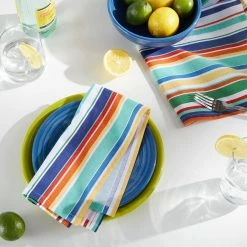 Joplin Stripe 19 in. x 19 in. Blue/White Striped Cotton Coastal Napkin (Set of 4) by Fiesta