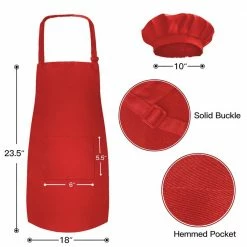 18 in. x 23.5 in. Kid’s Apron with Chef Hat Set (3 Set) – Skin-Friendly Children’s Bib with Pocket – (Red) by Novelty Place