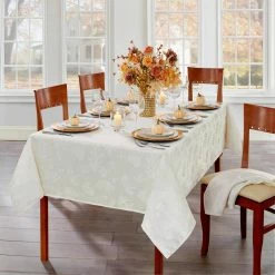 60 in. W x 84 in. L Oval Taupe Elegant Woven Leaves Jacquard Damask Tablecloth by Elrene