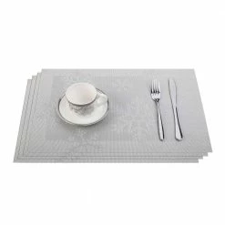 Silver Snowflakes Jacquard 12 in. x 18 in. PVC Fiber Woven Non-Slip Washable Placemat (Set of 4) by J&V TEXTILES