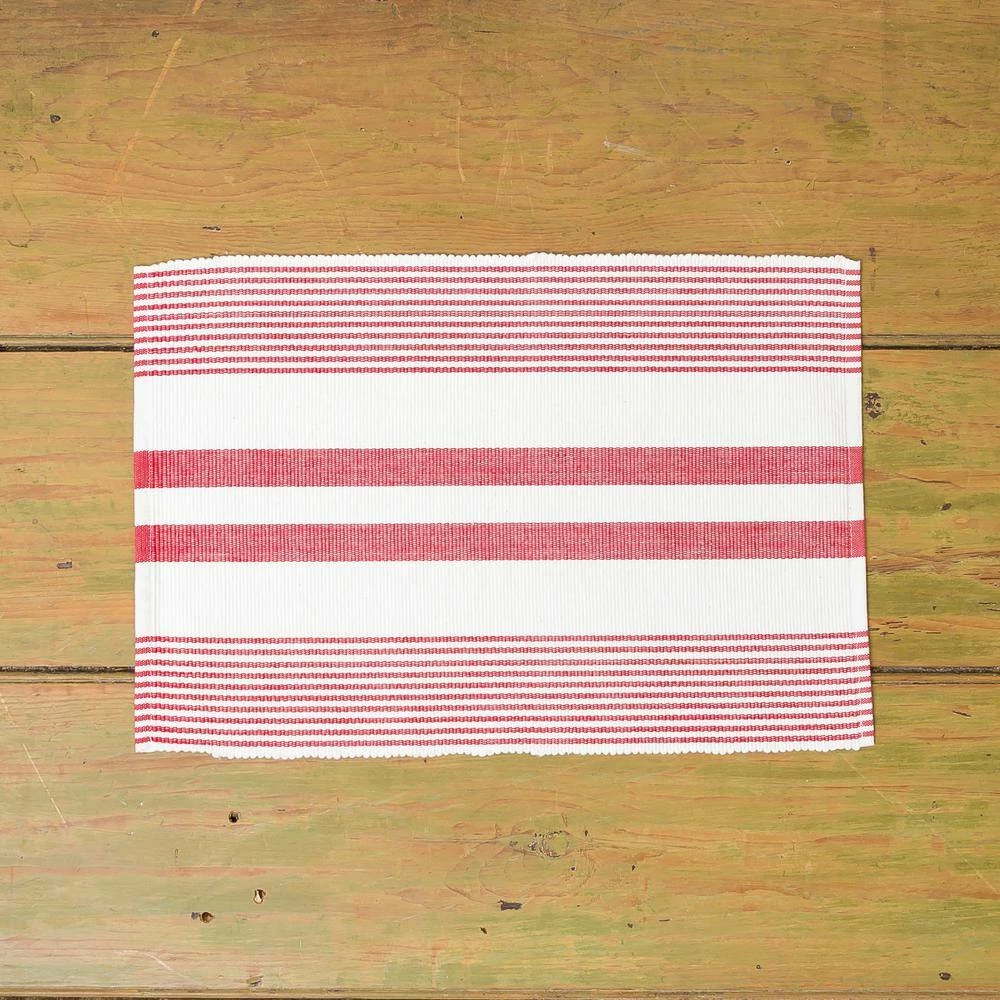 Bring a classically casual look to your tabletop with the Red and White Stripe tabletop collection. A combination of thick and thin stripes woven in classic colors make this collection perfect for mixing and matching for a complete casual, laid back tablescape. Crafted of cotton, this woven collection is machine washable for easy care. Finish your look with coordinating napkins and table runners available separately.