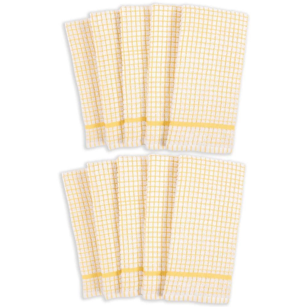 Set of 10 Grid Terry Kitchen Towels, 20 x 30 in., 100% Cotton, Ultra Absorbent Terry Dish Towels, Yellow by KAF HOME