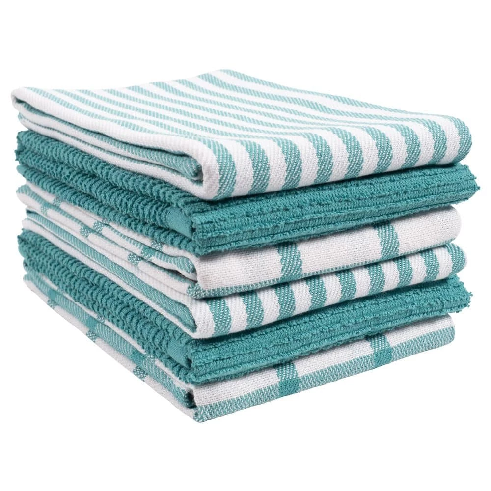 MULTI-PURPOSE: Cook, clean, bake, show off. These towels are an environmentally friendly alternative to paper towels. With 4 flat towels that add a pop of fashion, your cooking and dish drying needs are covered. Perfect for spills and kitchen messes, the 2 terry towels add an extra element of utility to the set.
