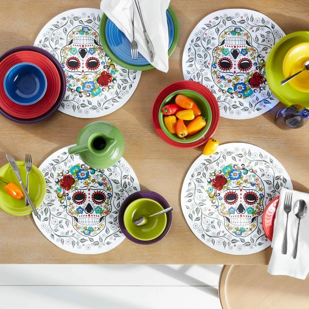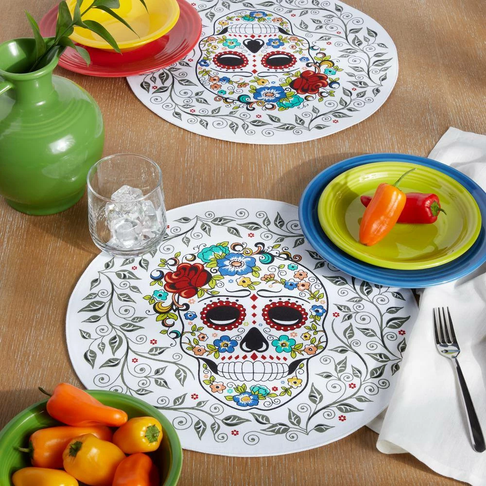 - COTTON PLACEMATS: The Fiesta Sugar Skull round placemats are made of 100% cotton for long-lasting and frequent use. They can be used for any special occasion.