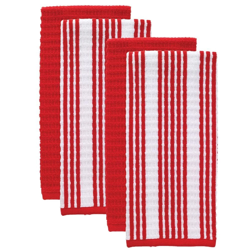 T-fal Red Solid and Stripe Cotton Waffle Terry Kitchen Towel (Set of 4) by RITZ