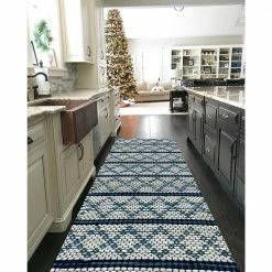 Skade 14 in.W x 72 in. D Blue and White Geometric Reversible Cotton Table Runner by LR Home