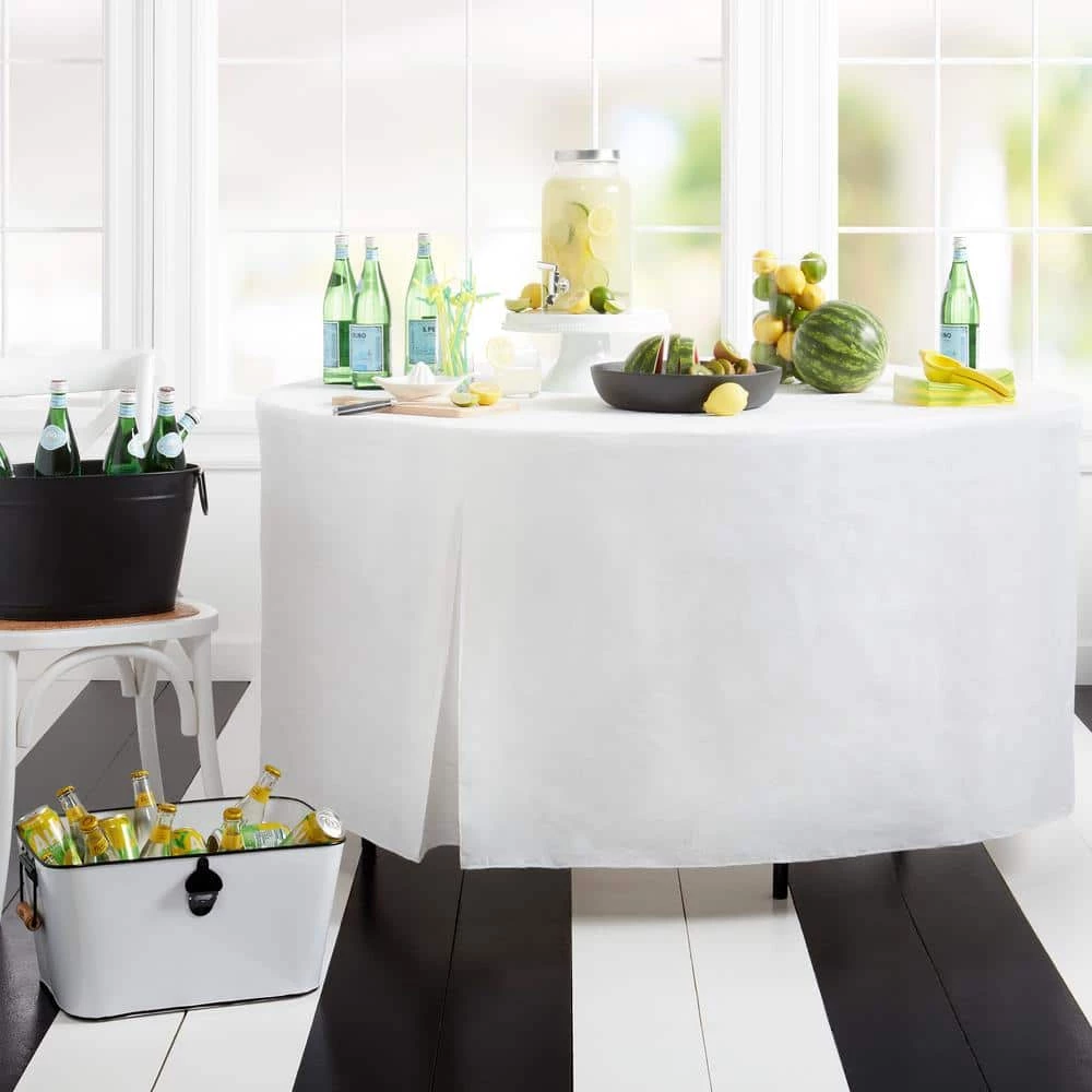 - ELEGANT LOOK: The Town & Country Living Tablevogue Fitted PEVA Table Cover in white features a simple yet classy textured design, with fitted layer that hangs neatly to the floor when it’s covering your table, offering an elegant look for any occasion. It’s your new entertaining essential.