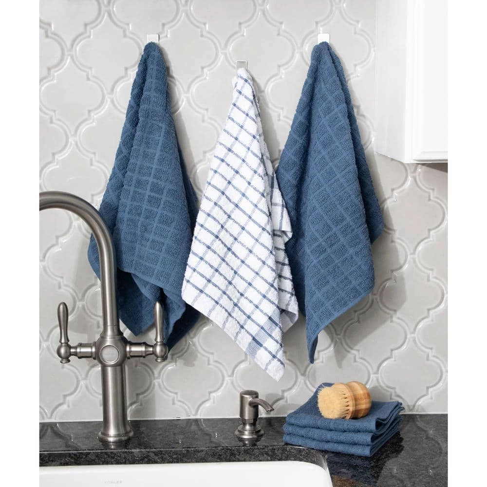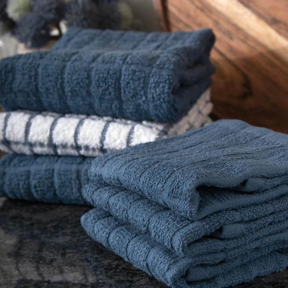 - Includes: 1 check kitchen towel, 2 solid kitchen towels, and 3 solid dish cloths