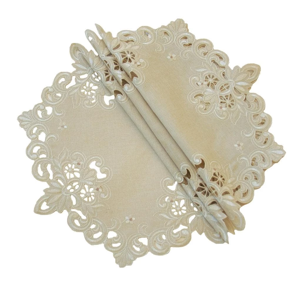 This elegant linen collection brings a touch of traditional charm to your table settings. Delicate scalloped cutwork with tonal embroidery accent the edges of these lovely linens. Available in Ivory or Taupe. As your definitive home decor destination, Xia Home Fashions feels that every day should be lived fashionably. Our distinctive designs, rich details and tempting accessories are sure to endlessly fulfill your homes finicky fashion sense. Whether you are keeping up with the ever changing colors of the holidays and seasons, looking for a stunning piece to tie your existing interior decor together while staying in tune with your individual style or simply in need of an easy care focal point for an upcoming party or event, Xia Home Fashions has stylish creations that will complete your look and win complements at your next gathering.